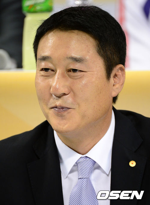 원주 동부 이충희 감독이 출사표를 말하며 미소짓고 있다.