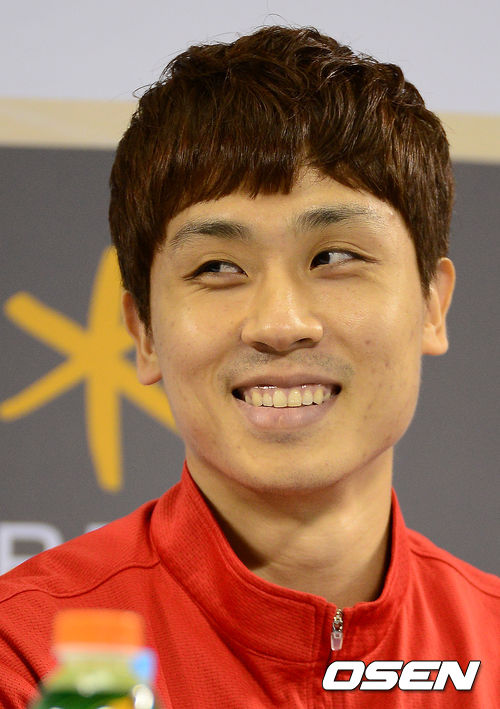 안양 KGC 김태술이 질문에 답을 하며 미소짓고 있다.