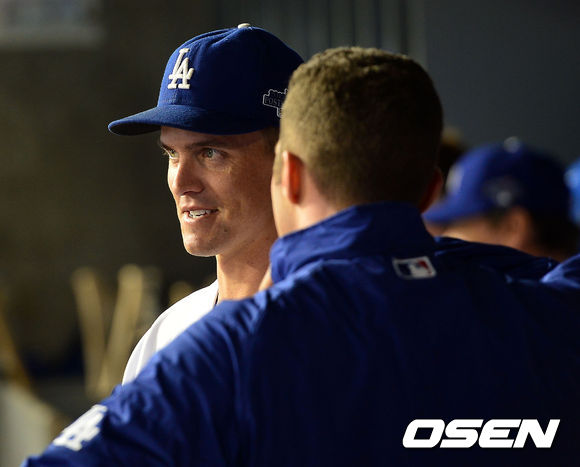 7일 (이하 한국시간) 미국 캘리포니아주 로스앤젤레스 다저스타디움에서 열린 2013 메이저리그 LA 다저스와 애틀랜타 브레이브스의 디비전시리즈 3차전 경기, 6회를 마치고 덕아웃으로 들어온 카푸아노가 덕아웃에서 그레인키와 즐겁게 얘기를 나누고 있다.