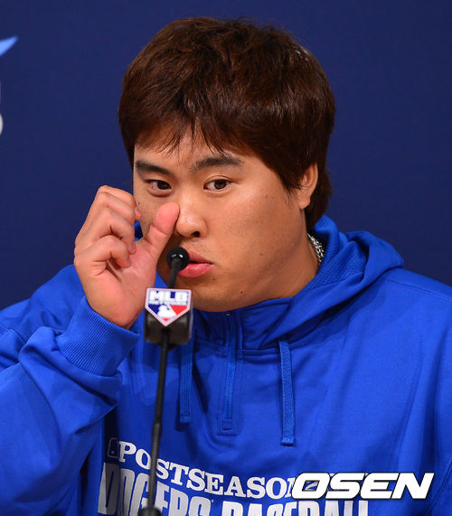 경기를 마치고 다저스 류현진이 인터뷰 중 아쉬운 표정을 짓고 있다./ rumi@osen.co.kr