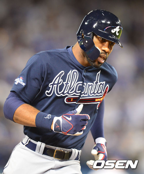 9회초 1사 1루 애틀란타 제이슨 헤이워드가 투런포를 날리고 있다./ rumi@osen.co.kr