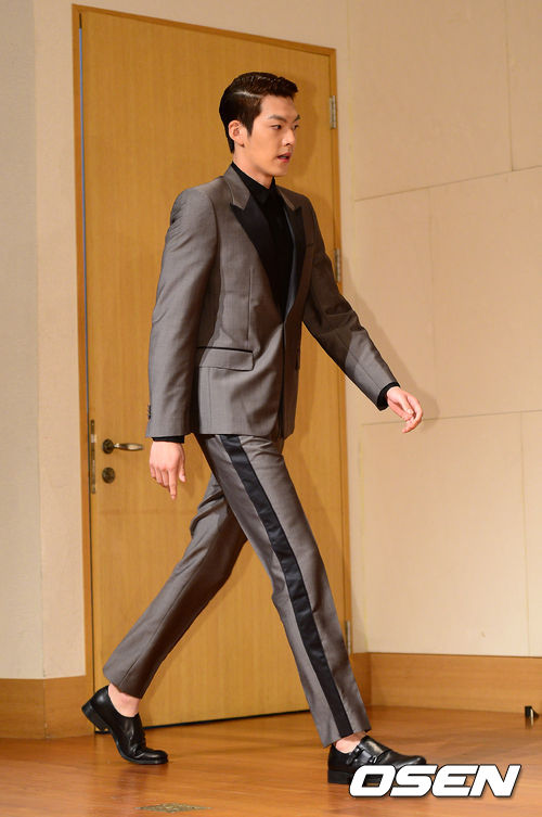 김우빈이 포토타임을 위해 무대에 오르고 있다.