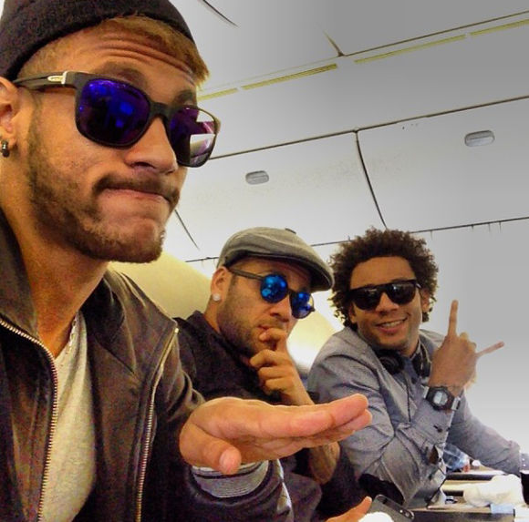 네이마르는 한국행 비행기에 오르기 전 자신의 SNS에 인증샷을 남겼다. 사진 속에서 그는 알베스, 마르셀루와 함께 멋지게 선글라스를 쓰고 저마다 코믹한 포즈를 취하고 있다. 그는 "아시아로 향한다"는 글을 남기며 처음 찾는 한국에 대한 기대감을 드러냈다.
