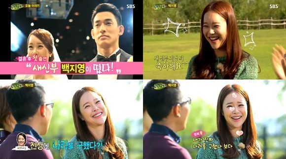 결혼 후 처음으로 예능에 출연한 백지영은 드라마 ‘시크릿 가든’의 ‘그 여자’를 부르며 등장해 뜨거운 축하 인사를 받았다.