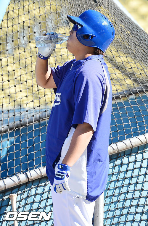 8일 (이하 한국시간) 미국 캘리포니아주 로스앤젤레스 다저스타디움에서 2013 메이저리그 LA 다저스와 애틀랜타 브레이브스의 디비전시리즈 4차전 경기가 열릴 예정인 가운데 다저스 류현진이 물을 마시고 있다.