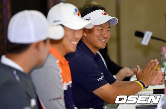 최경주, 이동환, 김시우가 취재진의 질문에 답하고 있다.