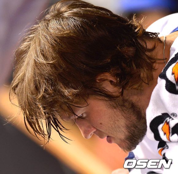 8일 (이하 한국시간) 미국 캘리포니아주 로스앤젤레스 다저스타디움에서 2013 메이저리그 LA 다저스와 애틀랜타 브레이브스의 디비전시리즈 4차전 경기 6이닝 2실점으로 승패없이 마운드를 내려온 커쇼가 더그아웃에서 생각에 잠겨있다.