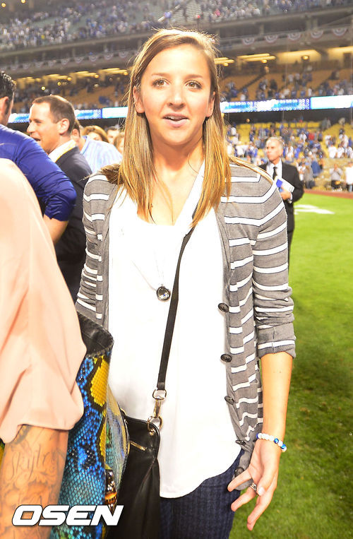 경기를 마치고 커쇼의 아내가 커쇼를 바라보고 있다. / rumi@osen.co.kr