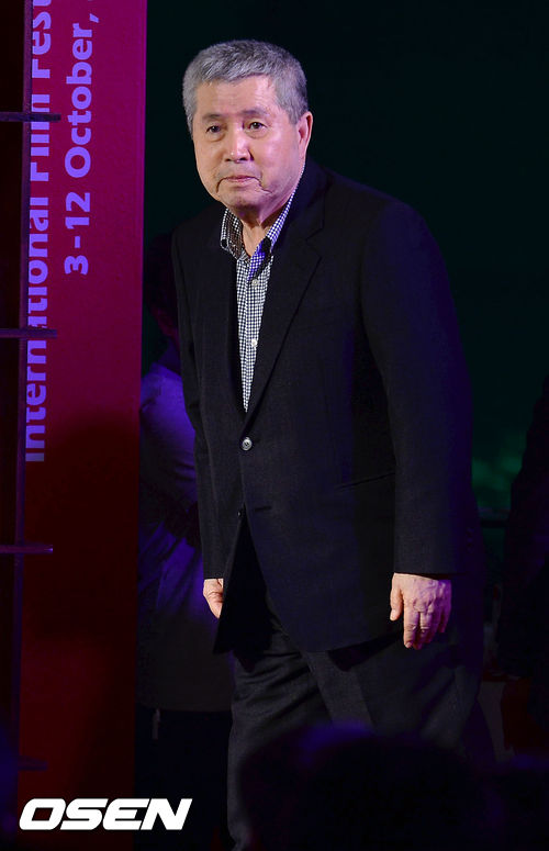 8일 오후 부산 해운대 영화의전당에서 진행된 제 18회 부산국제영화제 오픈 토크 '임권택과 임권택의 배우들'에서 임권택 감독이 무대로 입장하고 있다.
