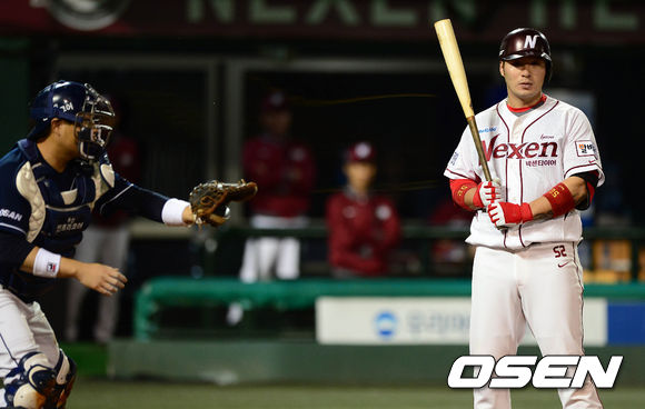 8일 오후 서울 목동구장에서 열린 '2013 한국야쿠르트 세븐 프로야구' 포스트시즌 넥센 히어로즈와 두산 베어스의 준플레이오프 1차전 경기 3회말 2사 2,3루 박병호가 고의4구로 진루하고 있다.