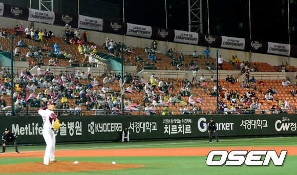 8일 오후 서울 목동구장에서 '2013 한국야쿠르트 세븐 프로야구' 포스트시즌 넥센 히어로즈와 두산 베어스의 준플레이오프 1차전 경기가 열린 가운데, 빈 관중석이 눈에 띈다.