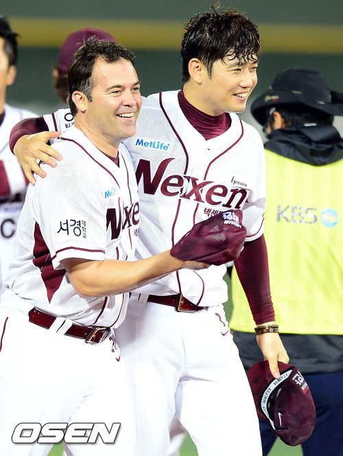 넥센은 8일 목동구장에서 열린 2013 한국야쿠르트 세븐 프로야구 준플레이오프 1차전에서 3-3으로 팽팽한 9회말 2사2,3루에서 장기영이 끝내기 안타를 터트려 4-3으로 극적인 승리를 거두었다. 이로써 넥센은 2008년 창단 이후 역사적인 첫 포스트시즌 승리를 따냈다./youngrae@osen.co.kr