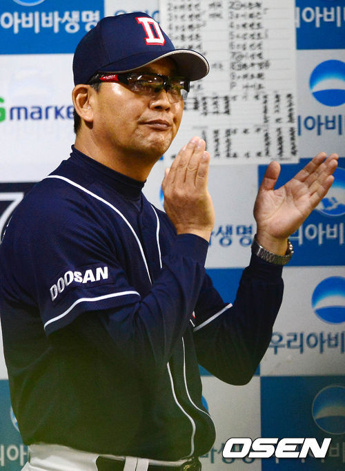 무안타에 그친 4번 타자 김현수에 대해서는 “1루수 기용 부분은 경기 상황과 선수 기용에 따라서 김현수가 1루를 맡아줘야 하는 부분도 있다. 상황에 따라서 운용하는 것. 정수빈이 뒤로 간 것은 뛰는 야구도 해야 하기 때문에 그렇게 기용을 한 것이다”라며 “선발 니퍼트는 걱정했던 것보다 괜찮았다. 경기 준비 전 제구 부분에서 좀 안 좋아 걱정했는데 잘 던졌다고 생각한다”라고 답한 뒤 인터뷰를 마쳤다.
