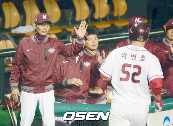 염경엽 넥센 히어로즈 감독이 팀의 역사적인 포스트시즌 첫 승을 이끌었다.