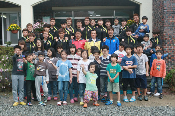 광주FC는 지난 8일 오후 2시부터 6시까지 아동복지시설인 영신원과 남광주역에서 나눔봉사활동을 펼쳤다고 밝혔다. 먼저 38명으로 구성된 1팀은 영신원을 찾아 방 구석구석을 청소한 뒤 하교한 아이들과 함께 축구클리닉을 열고 즐거운 한때를 보냈다.