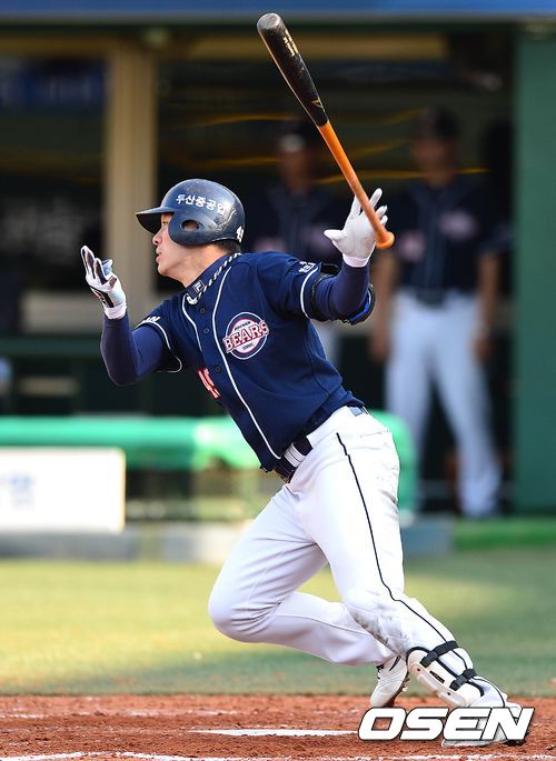 9일 오후 서울 목동구장에서 열린 '2013 한국야쿠르트 세븐 프로야구' 준플레이오프 2차전 넥센 히어로즈 와 두산 베어스의 경기, 4회초 두산 공격 1사 주자없는 상황 3번 민병헌이 우전안타를 날리고 있다.