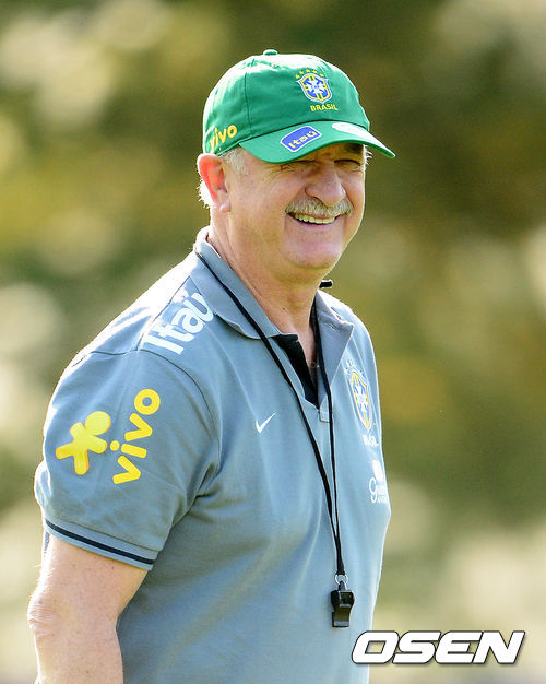 스콜라리 감독이 선수들의 훈련을 바라보며 미소짓고 있다.