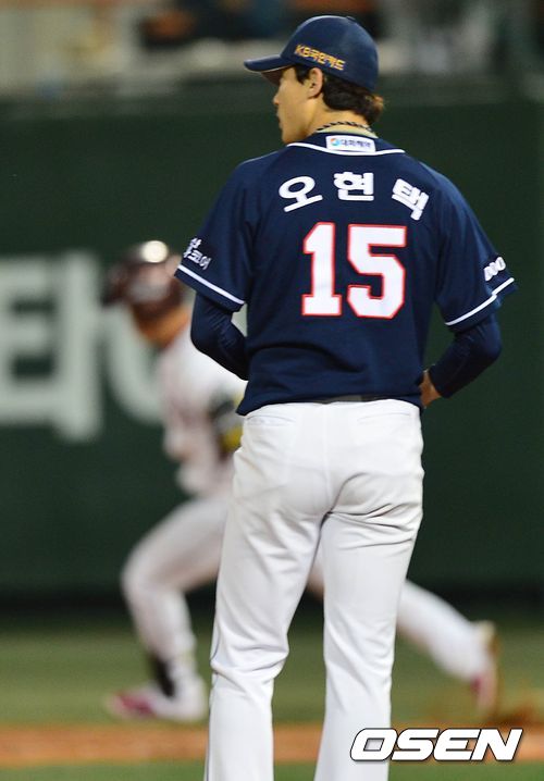 연장 10회말 1사 3루 상황 6번 김지수에게 끝내기 안타를 허용한 두산 투수 오현택이 아쉬워하고 있다./ dreamer@osen.co.kr
