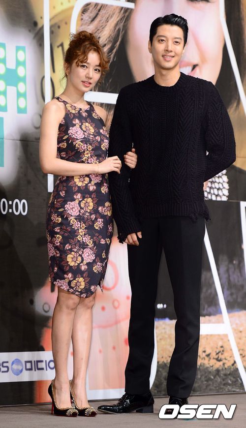 배우 윤은혜와 이동건이 포토타임을 하고 있다.