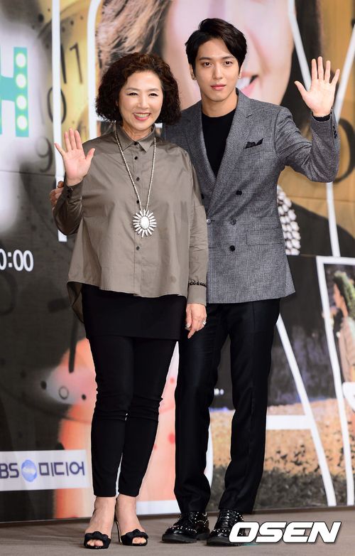 배우 고두심과 정용화가 포토타임을 하고 있다.