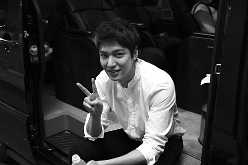 사진 속에서 이민호는 블랙 팬츠에 화이트 셔츠를 매치, 재벌가 상속자다운 깔끔한 패션을 선보이고 있다. 특히 이민호는 함박웃음과 함께 브이(V)자를 그리며 귀여운 매력을 발산해 눈길을 사로잡는다.