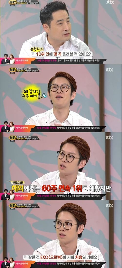 이때 강용석이 갑자기 “슈주는 음원 차트 10위 안에 몇 곡을 올려봤냐”라며 김희철에게 질문을 던졌다.
