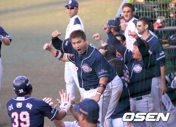 넥센과 1차전서 그는 니퍼트를 내세웠음에도 1회부터 2점을 내주어 분위기 반전이 절실한 상황에서 2회초 1사 후 첫 번째 타석에 들어서 위력적인 피칭을 보인 브랜든 나이트의 3구를 받아친 타구가 유격수 강정호 글러브에 걸리자 1루까지 전력 질주하며 기어코 내야 안타를 만들어내 동료들의 힘을 돋우고 후속타자자 터져 2-2 동점을 만들어냈습니다.