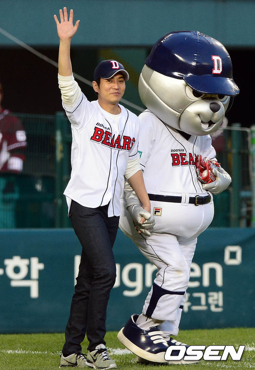 11일 오후 서울 잠실구장에서 열린 '2013 한국야쿠르트 세븐 프로야구' 준플레이오프 3차전 두산 베어스와 넥센 히어로즈의 경기 시작전 주상욱이 시구를 위해 그라운드로 걸어나오고 있다.
