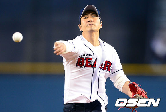 11일 오후 서울 잠실구장에서 열린 '2013 한국야쿠르트 세븐 프로야구' 준플레이오프 3차전 두산 베어스와 넥센 히어로즈의 경기전 주상욱이 시구를 하고 있다.