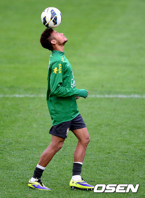 네이마르가 머리로 볼 트래핑을 하고 있다.