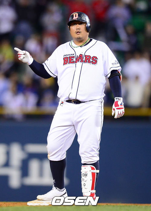 11일 오후 서울 잠실구장에서 열린 '2013 한국야쿠르트 세븐 프로야구' 준플레이오프 3차전 두산 베어스와 넥센 히어로즈의 경기 4회말 2사 두산 최준석의 홈런타구가 2루타로 선언되자 최준석이 주심에게 어필하고 있다.