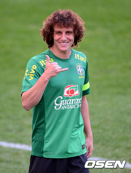 다비드 루이스가 훈련에 앞서 미소짓고 있다.