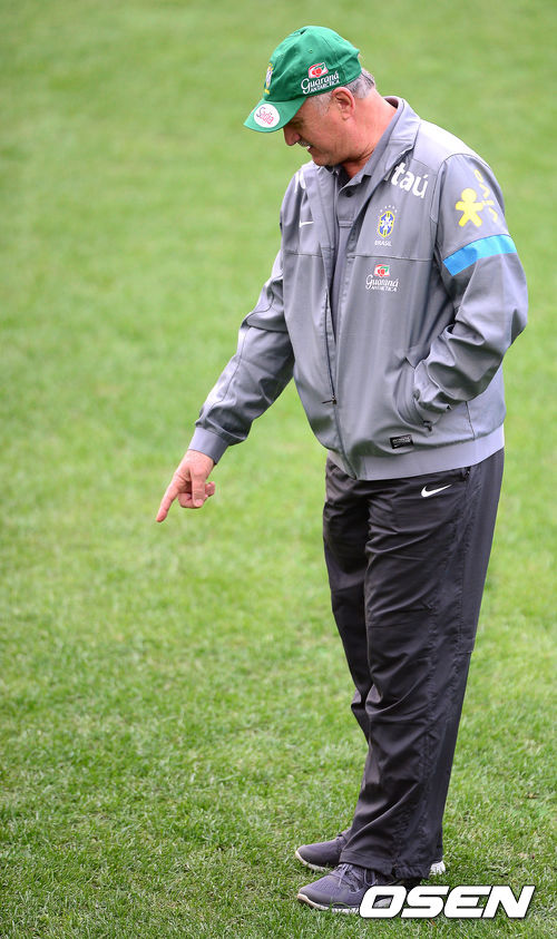 스콜라리 감독이 잔디 상태를 체크하고 있다.