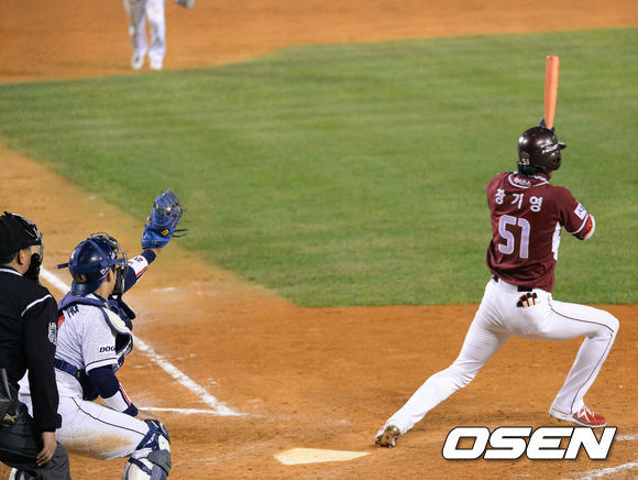 그런데 계속된 무사 3루 넥센 공격에서 또 어이없는 장면이 연출됐다. 1사 3루에서 장기영이 볼카운트 노볼 투스트라이크에서 3구째 높은 공에 갑작스럽게 배트를 세우며 번트 모션을 취했고, 볼도 맞추지 못한 채 번트 헛스윙이 돼 삼진으로 물러났다. 넥센도 어렵게 잡은 기회를 제발로 걷어찼다. 결국 두산이 연장 14회말 이원석의 끝내기 안타로 승부를 끝냈다.