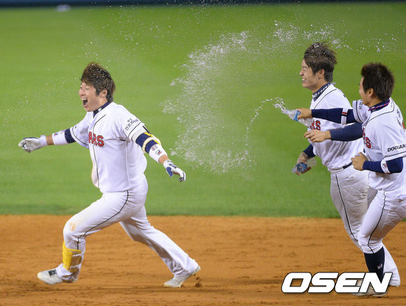 이원석 끝내기 안타,'물벼락 너무 좋아!'