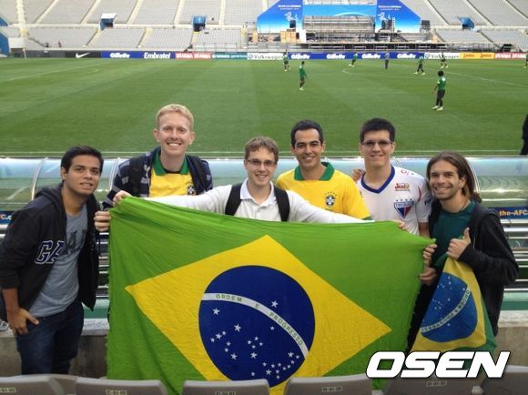 브라질 경기를 경기장에서 본적이 있냐는 물음에는 “브라질에 있을 때 딱 한 번 봤다. 워낙 축구열기가 뛰어나다보니 우리나라에서 표를 구하는 것은 하늘의 별 따기다. 오히려 한국에서 보기가 쉬웠다. 네이마르(21, 바르셀로나)를 이렇게 가까이서 보다니 정말 믿어지지가 않는다”며 감격했다.