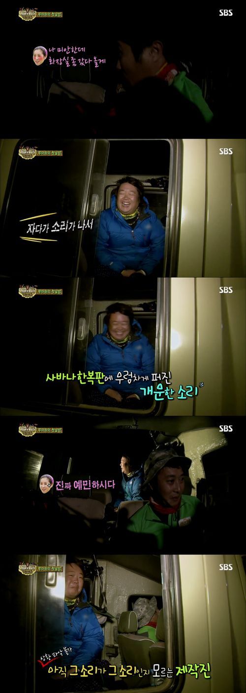 이때 카메라 한 대가 한은정이 탄 차를 찍었다. 류담이 카메라 감독에게 “무슨 일이냐”고 묻자 “무슨 소리가 나서 왔다”고 말했고 류담과 김병만이 웃기 시작했다.