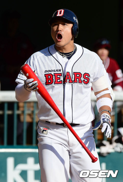 12일 오후 서울 잠실구장에서 열린 '2013 한국야쿠르트 세븐 프로야구' 준플레이오프 4차전 두산 베어스와 넥센 히어로즈의 경기 3회말 1사 1루 홍성흔이 볼넷으로 걸어나가고 있다.