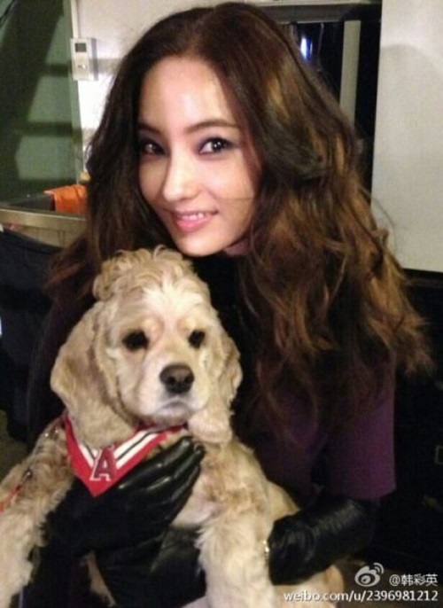 한채영은 12일 오후 자신의 웨이보에 "오랫동안 화보를 못 찍었어요. 현장에 오니 귀여운 강아지가 있네요. 같이 사진 찍기"라는 글과 함께 사진 한 장을 게재했다.