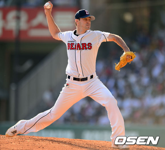 12일 오후 서울 잠실구장에서 열리는 '2013 한국야쿠르트 세븐 프로야구' 준플레이오프 4차전 두산 베어스와 넥센 히어로즈의 경기 6회초 2사 1,3루 두산 핸키스가 마운드에 올라 역투하고 있다.
