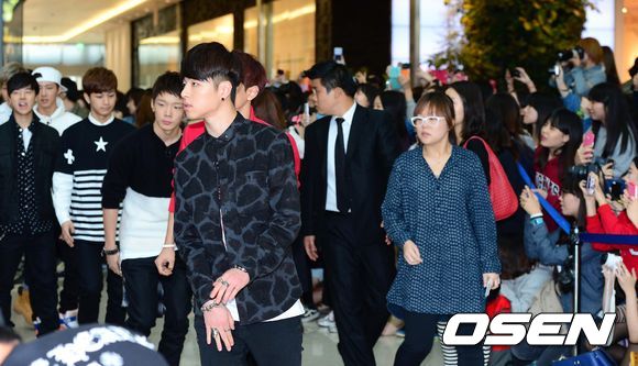 그룹 윈 멤버들이 행사장으로 이동하고 있다.