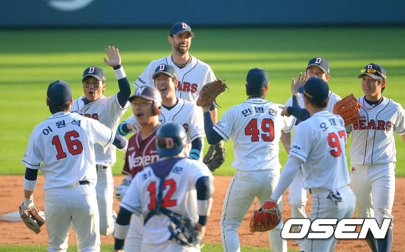 경기 종료후 두산 선수들이 승리의 기쁨을 나누고 있다./ajyoung@osen.co.kr