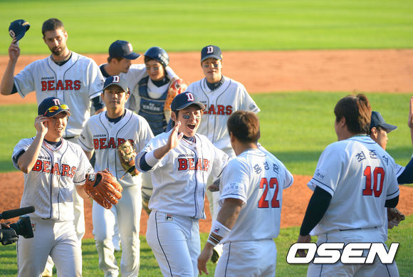 경기 종료후 두산 선수들이 승리의 기쁨을 나누고 있다./ajyoung@osen.co.kr