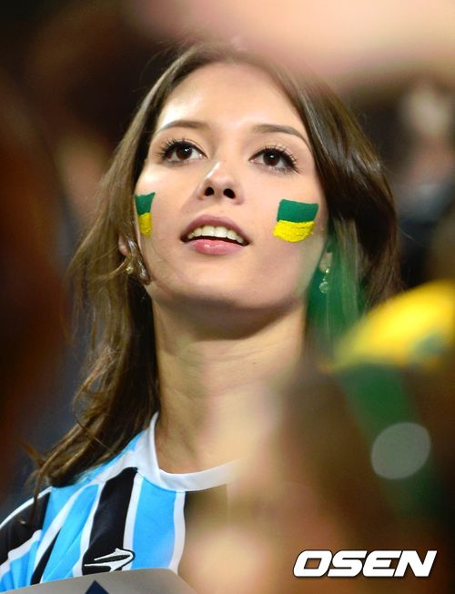 경기 전 브라질 미녀가 열띤 응원을 하고 있다.