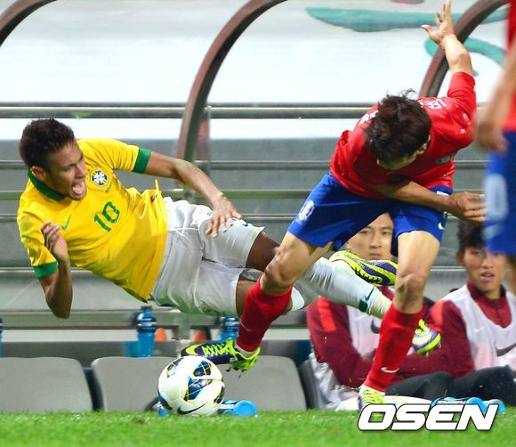 경기 전반 이청용이 네이마르와 치열한 신경전을 벌이고 있다.