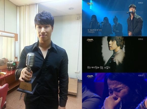 KBS 2TV ‘불후의 명곡, 전설을 노래하다’(이하 불후의 명곡)는 12일 공식트위터를 통해 최종우승을 한 김진호가 트로피를 들고 있는 사진을 게재했다.