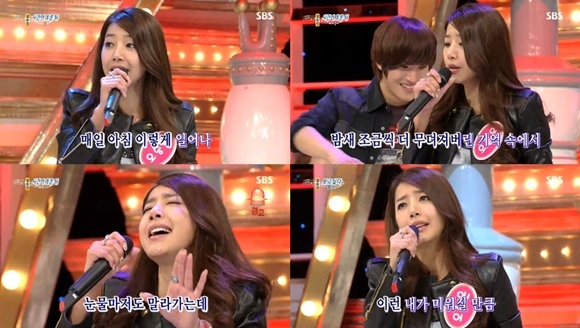 오승은은 13일 오전 방송된 SBS 예능프로그램 '도전천곡'에 10년 만에 출연해 맹활약을 펼쳤다. 가수로 활동한 바 있는 오승은은 이날 뛰어난 노래실력과 녹슬지 않은 댄스 실력을 보여줬다. 특히 오승은은 올 블랙 가죽 패션으로 등장해 관객들의 뜨거운 함성을 자아냈다.