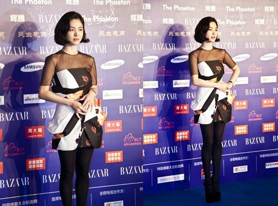 송혜교는 지난 10일 오후 중국 베이징에서 열린 2013 제 11회 바자 스타 자선의 밤 행사에 참석했다. 그는 이날 우아한 섹시미가 느껴지는 드레스와 사랑스런 단발머리로 매력을 뽐냈다.