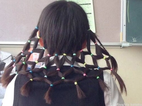 공개된 ‘일본 그물 머리’ 사진 속에는 일본의 학생으로 보이는 한 청소년이 그물 모양의 헤어스타일을 하고 있는 모습이 담겨 있다. 이 사진은 일본의 한 청소년이 트위터를 통해 공개했다고 알려졌다.