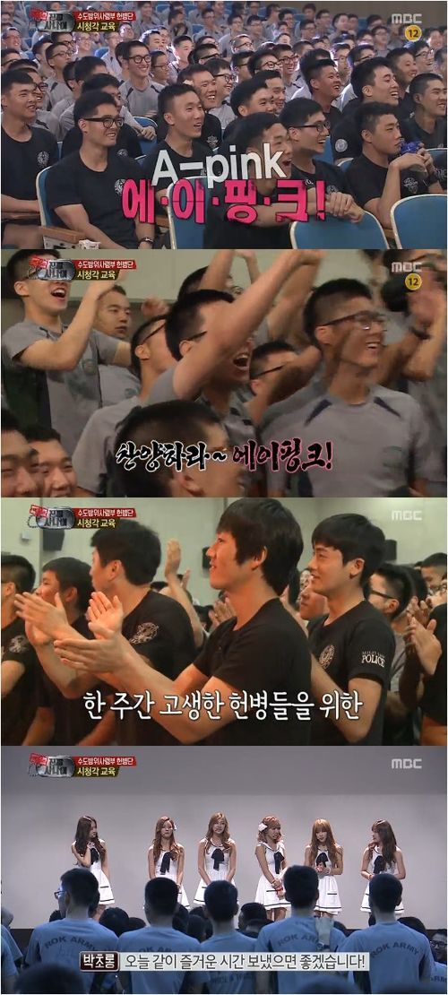 에이핑크는 13일 방송된 MBC 예능프로그램 ‘일밤-진짜 사나이’에서 위문공연을 했다.